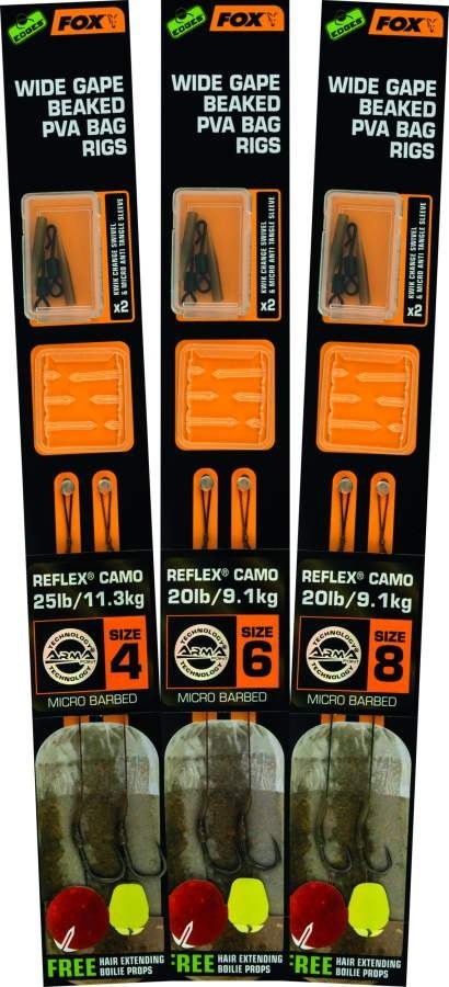Produkt CCR174 to zestaw dwóch haków Fox nr 4 z przyponem. Są one połączone z linką o wytrzymałości 25lb, wykonaną z materiału PVA. Przeznaczone do wędkarstwa karpiowego.
